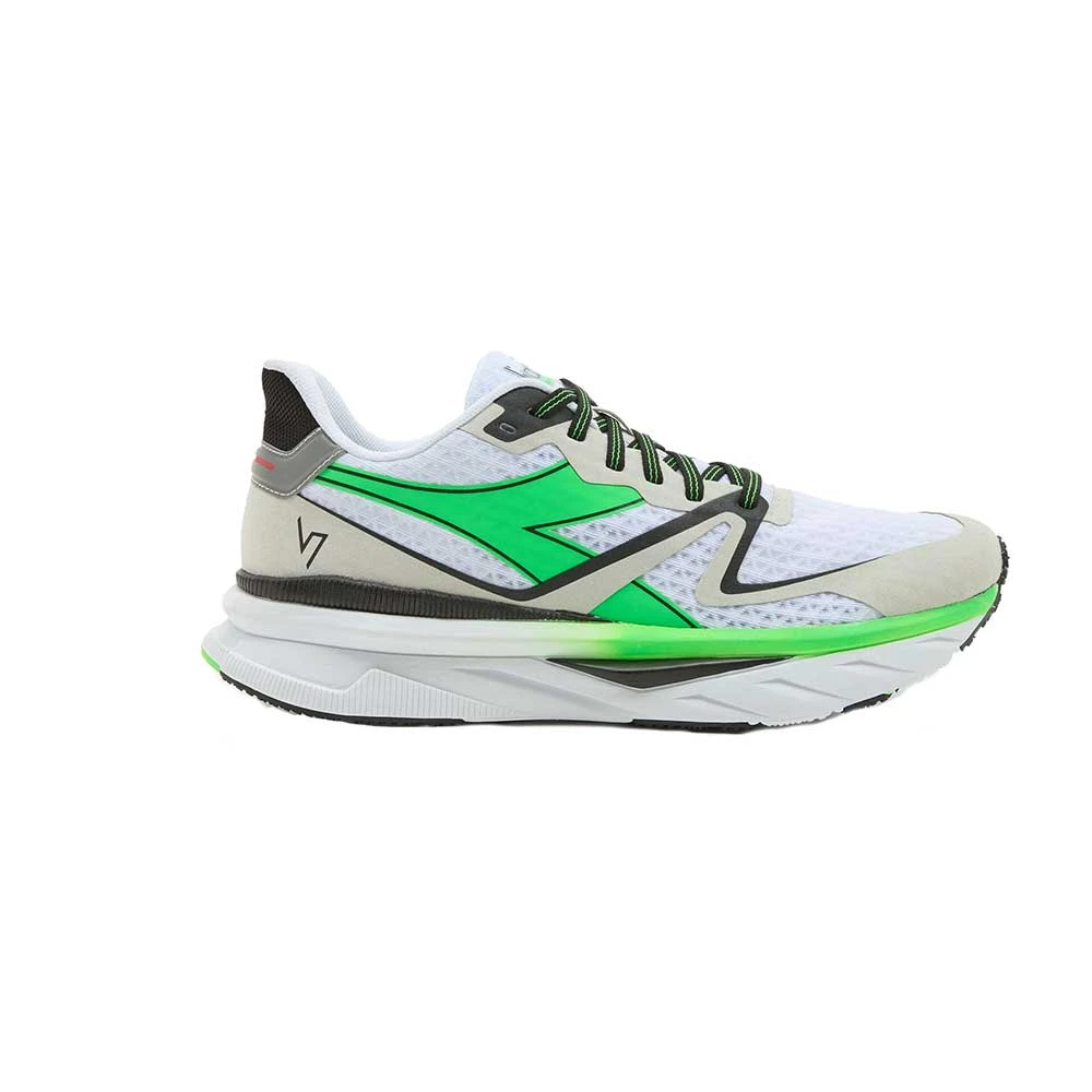 The Atomo V7000 stands out with its responsiveness and lightweight. The made-in-Italy “equipe atomo ” project is the utmost expression of the Diadora brand’s uniqueness in a max cushion, lightweight, neutral trainer.